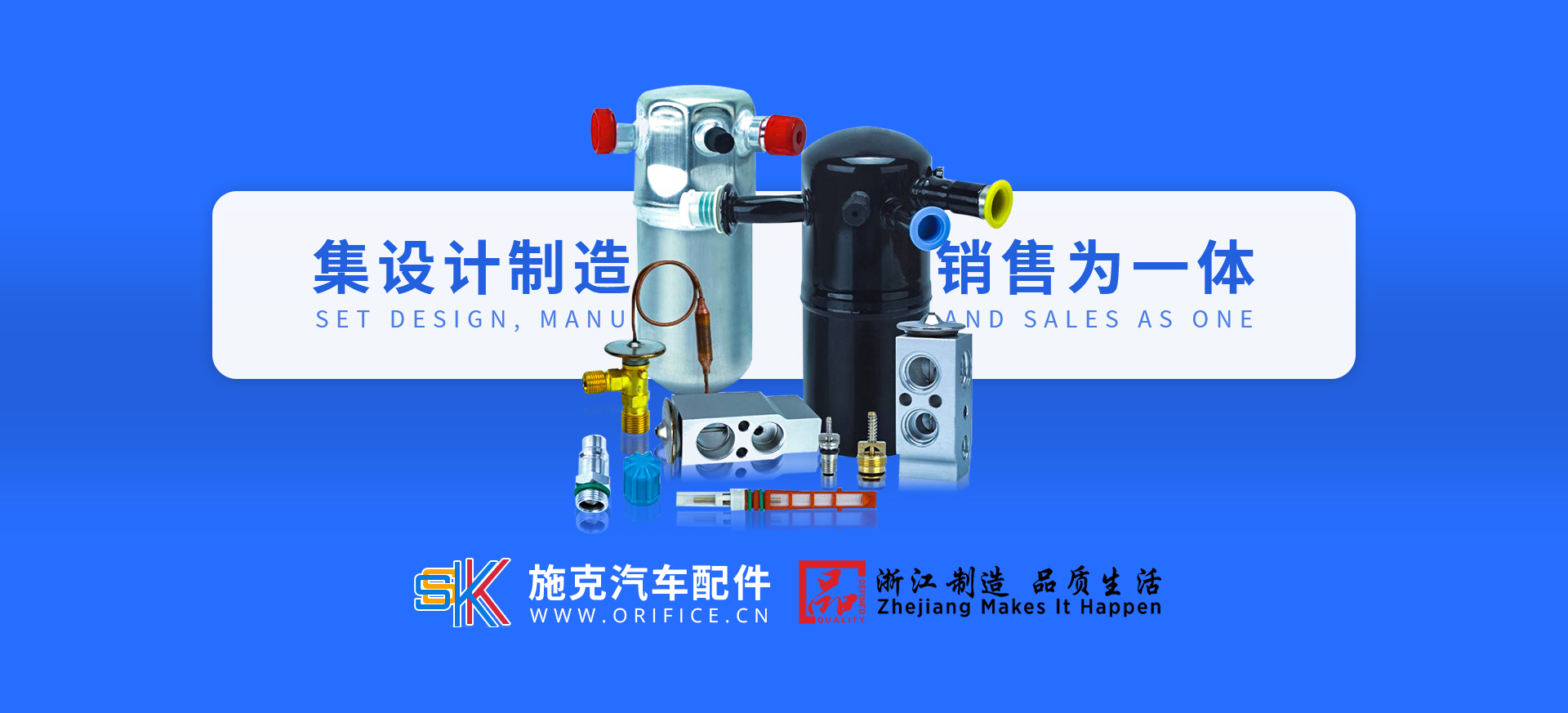 浙江施克汽車配件有限公司座落于“中國汽車空調零部件制造基地”──浙江省龍泉市,公司擁有汽車空調儲液干燥器、液汽分離器、熱力膨脹閥、閥座、節流閥等多樣化產品,是集設計、制造、銷售、服務為一體的現代化國家高新技術企業。公司成立于2006年,占地面積30000平方米,員工260余人,其中高級技術及高級管理人員有40多人。 2014年以來,公司致力OEM配套產品研發,目前配套于國外的博世(Bosch)、福特(Ford)、法雷奧(Valeo)、三電(Sanden)、斯飛樂(Spheros)等知名品牌。公司干燥瓶年產能可達:400萬套;膨脹閥年產能可達:200萬套;閥座年產能可達:500萬套 ;節流閥年產能可達:200萬套,覆蓋全球90%以上車型,在歐洲和北美等各大市場擁有良好的信譽。